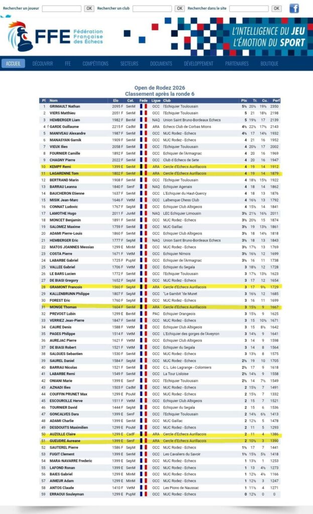 Ce week-end se tenait l’open de Rodez 2026 et notre club était fièrement représenté par 6 participants ! Bravo à eux !